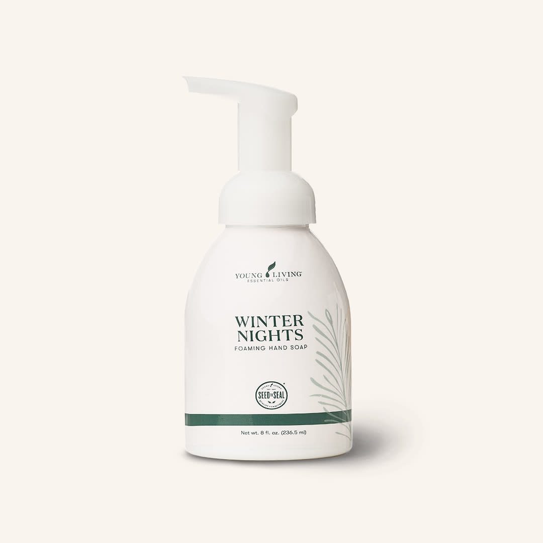 Winter Nights Foaming Hand Soap cleanses and softens hands with plant-based ingredients and moisturizing aloe and ginkgo botanicals. Infused with Young Living’s Winter Nights signature scent of Northern Lights Black Spruce, Cedarwood, Peppermint, and Orange essential oils, this unique blend invigorates the senses with the electricity of softly falling snow, the peace of crisp midnight air in winter, and the warmth of cozy spaces. Complete your Winter Nights experience with Winter Nights Hand Lotion and Winter Nights essential oil blend, available now for a limited time.